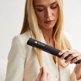 Rose gold titanium-infused floating plates ensure a smooth glide and help give hair a healthy glossy finish with each pass. It's the perfect tool to transform hair and achieve straight, wavy, or curly effects with lasting results that leave hair looking and feeling beautiful, soft, and silky.